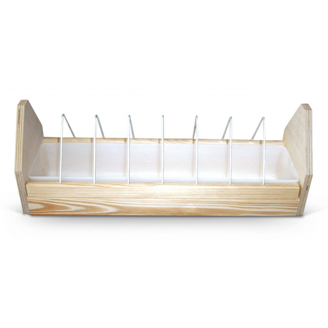 Tigela de comida em madeira com grelha basculante e tigela de plástico